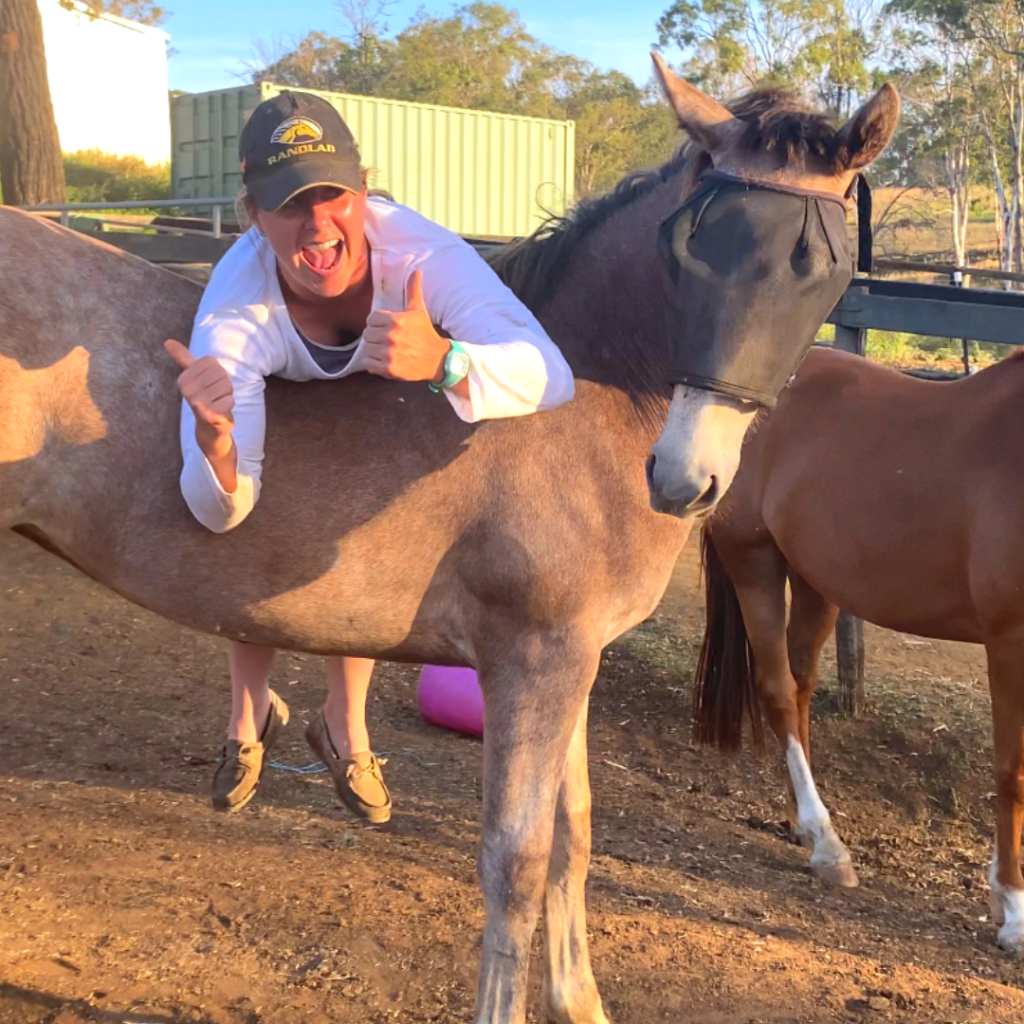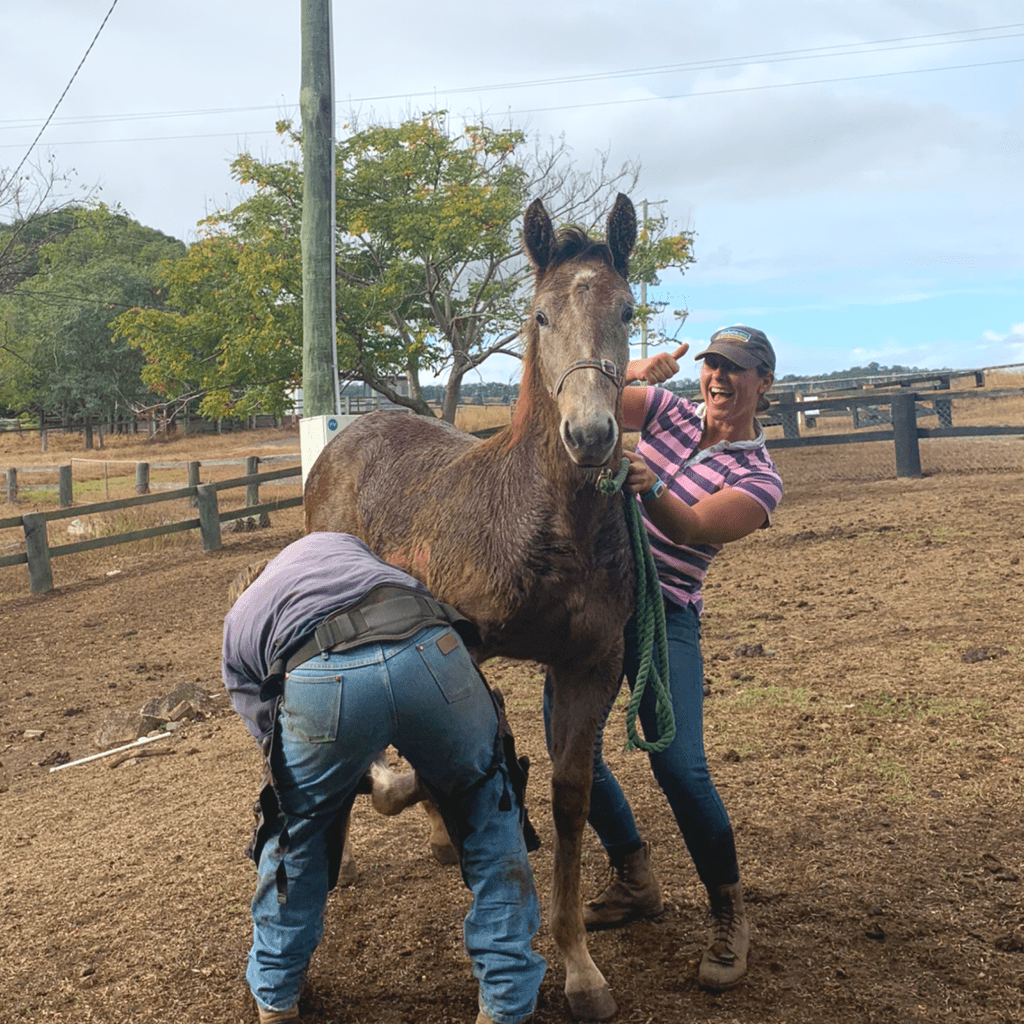 I had Biscuit, the brumby breaker- she was fun- she had mare attitude in buckets, but really it was a lack of her trust in humans and hence her acting defensively. Once she realised she wasn’t always in trouble and that working with people wasn’t a threat or fight, she became a lot happier and cooperative. She is now back home enjoying life trail riding and going to pony club.